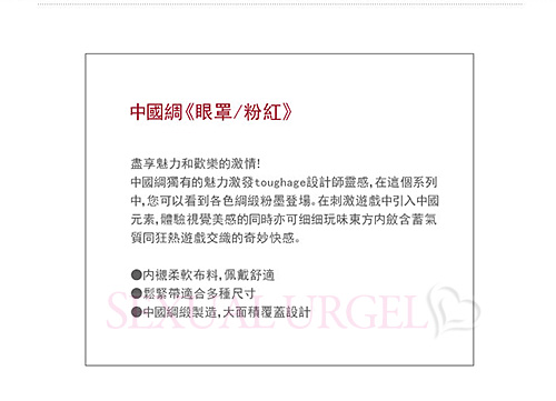 .主商品:美國駭客Toughage-Chinese silk Blindfold 中國綢 眼罩-粉