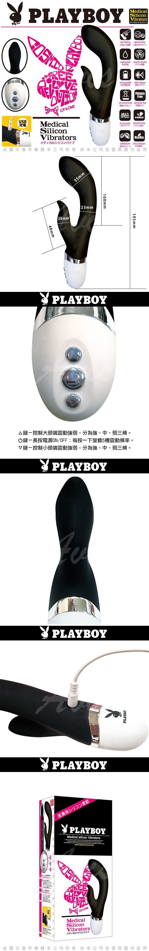.備註:內附USB充電線×1,PLAYBOY專屬收納袋×1