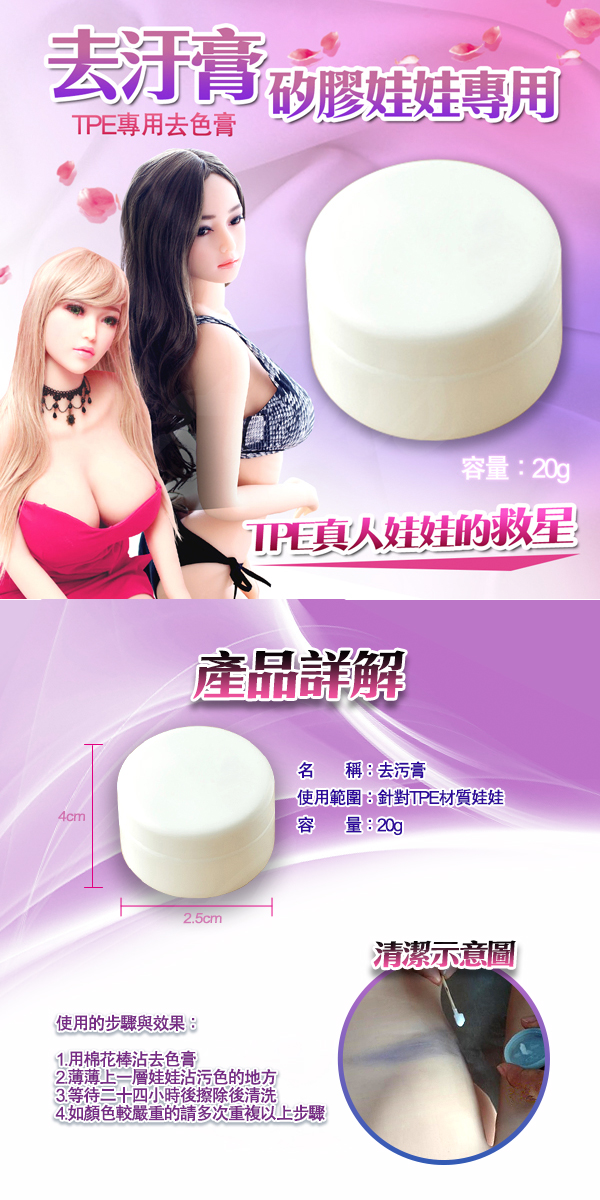 .主商品:TPE 實體真人娃娃專用去汙膏 20g