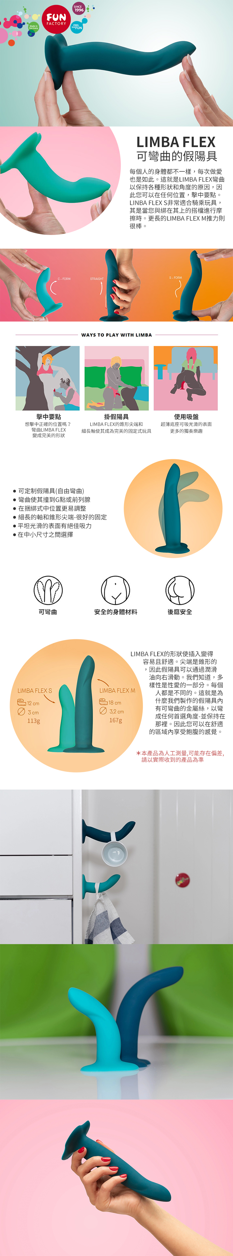 .主商品:德國Fun Factory - Limba Flex S 吸盤可彎曲柔軟吸盤按摩棒 綠